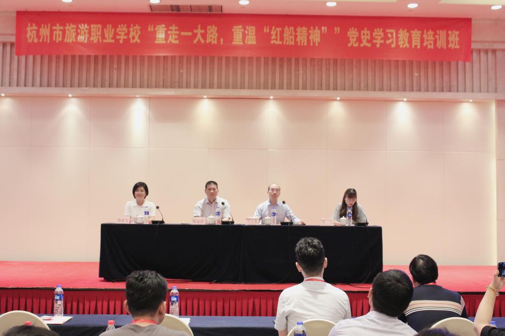 6月4日,杭州市旅游职业学校党员干部一行104人来校参加“重走一大路,重温红船精神”党史学习教育培训班。